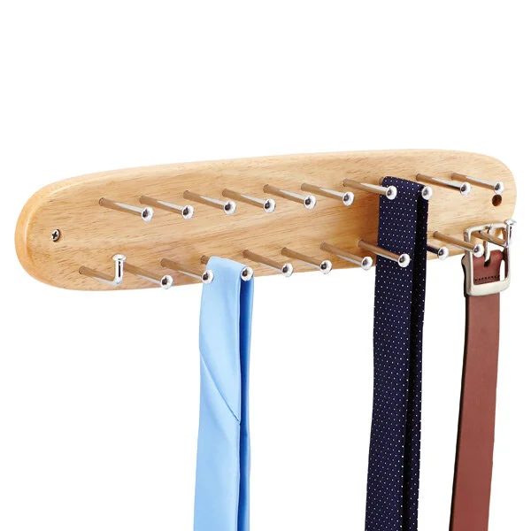 Natural Wooden Tie & Belt Rack